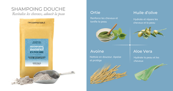 Nos produits naturels en poudre sont sans eau, rechargeables et zéro déchets... avec une mousse instantanée activée par l'eau de votre douche.